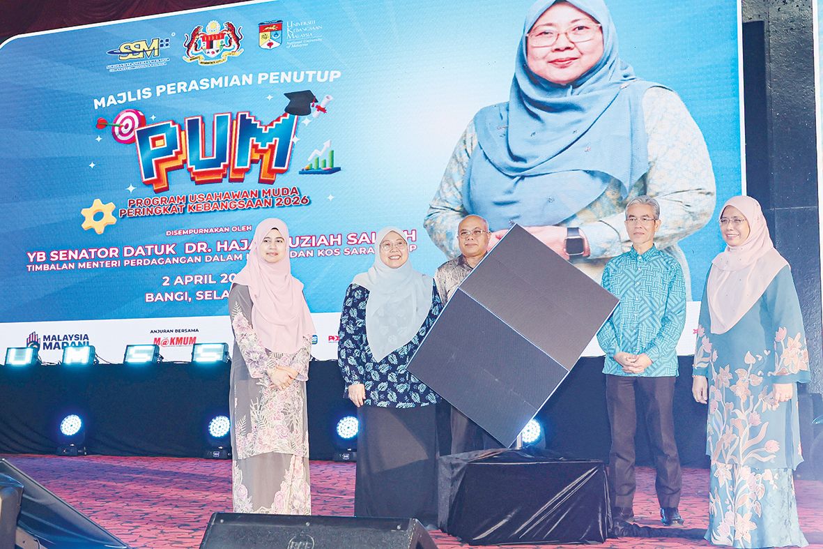 Fuziah (dua dari kiri) merasmikan Majlis Penutup Program Usahawan Muda Peringkat Kebangsaan 2026 di Dewan Canselor Tun Abdul Razak, Universiti Kebangsaan Malaysia kelmarin.