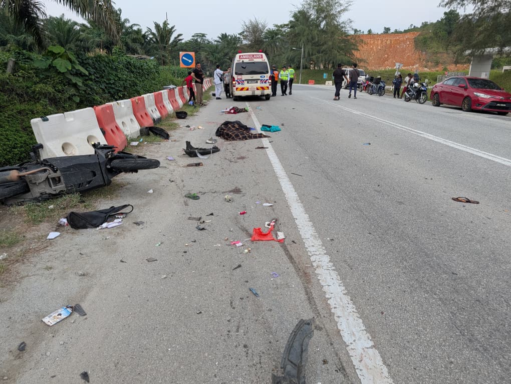 Jelasnya, ketika sampai di lokasi kejadian, motosikal dipercayai hilang kawalan dan terbabas sehingga memasuki laluan bertentangan lalu bertembung dengan sebuah kereta Proton Saga yang dipandu seorang wanita berumur 54 tahun.