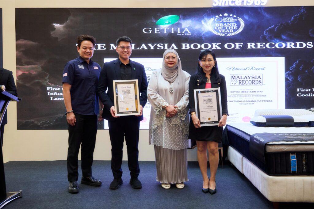 Pada majlis sama, Getha turut menerima dua pengiktirafan daripada Malaysia Book of Records bagi kategori tilam lateks semula jadi pertama dengan teknologi Graphite+ serta tilam penyejuk semula jadi pertama dalam negara.