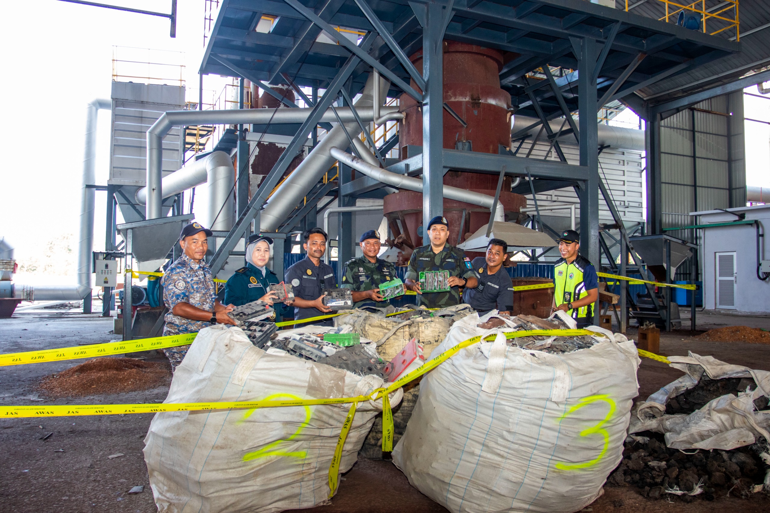“Pemeriksaan di kawasan kilang berkenaan juga menemukan satu mesin peleburan yang bernilai RM300,000 dan jumlah rampasan keseluruhan bernilai RM376,000 dengan setiap beg jumbo dianggarkan bernilai RM1,000 dan mesin peleburan RM300,000.