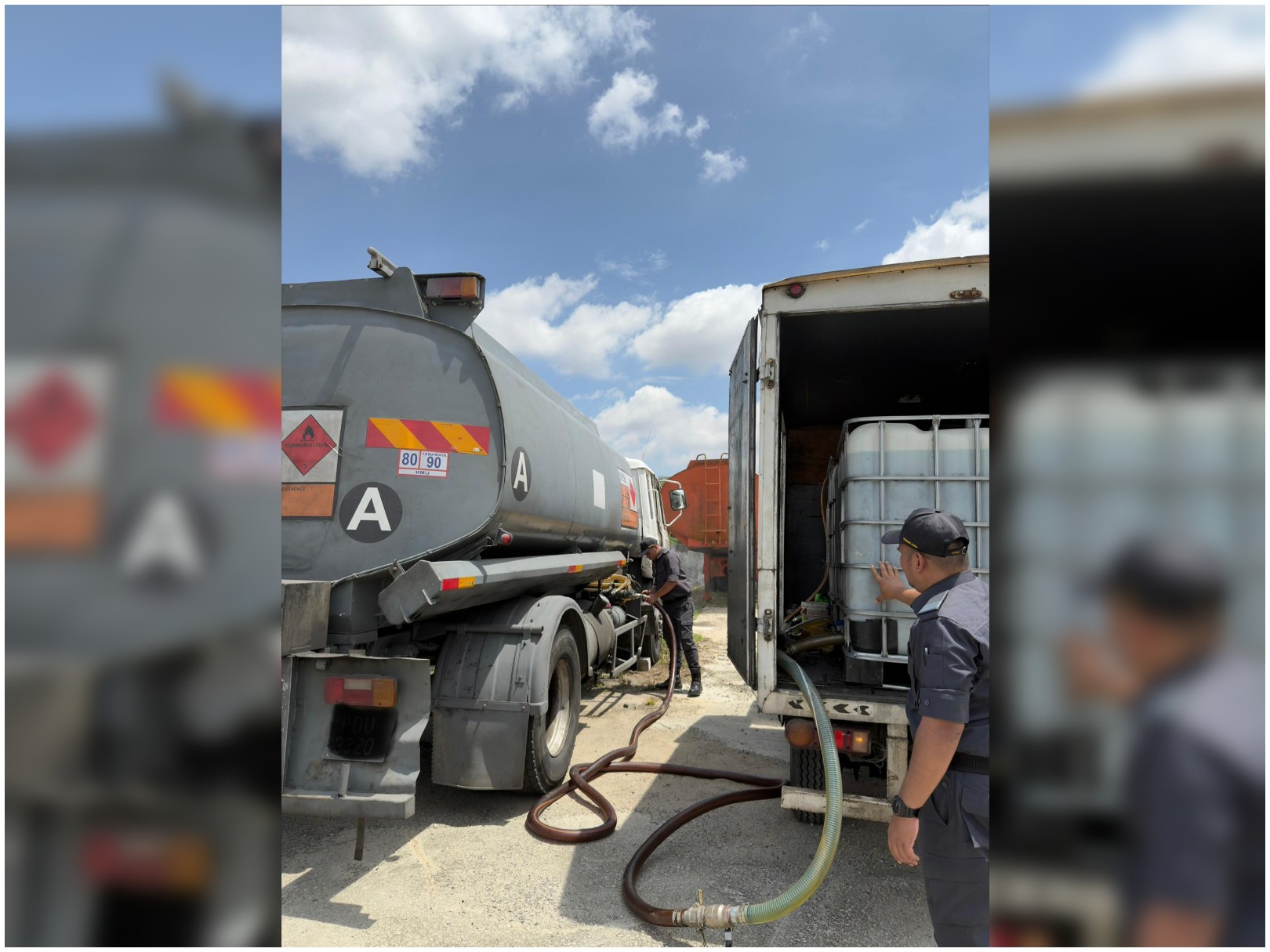 “Pemeriksaan mendapati sebuah lori mengandungi tiga tangki jenis Intermediate Bulk Container (IBC) berisi kira-kira 3,000 liter diesel yang dipercayai disedut sebelum dikumpulkan untuk dijual.