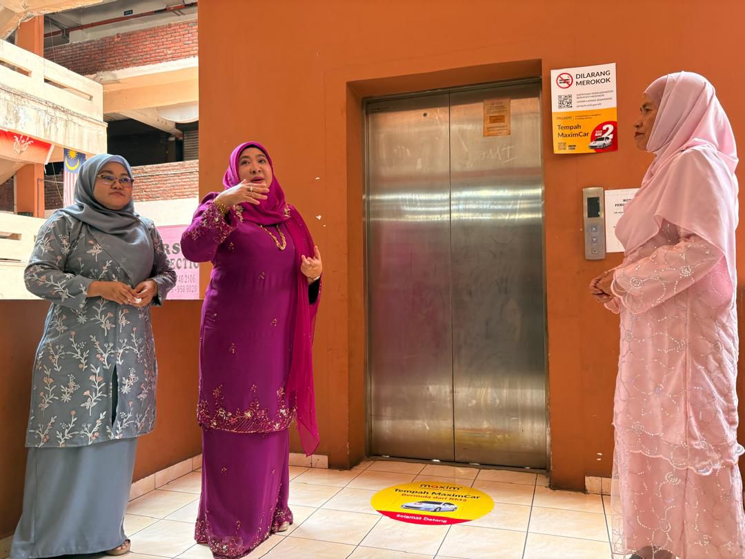 Nik Rosmawati (tengah) menunjukkan lif yang sudah lama tidak berfungsi di Bazar Buluh Kubu, Kota Bharu hari ini. Foto oleh ROSLIZA MOHAMED / KOSMO!