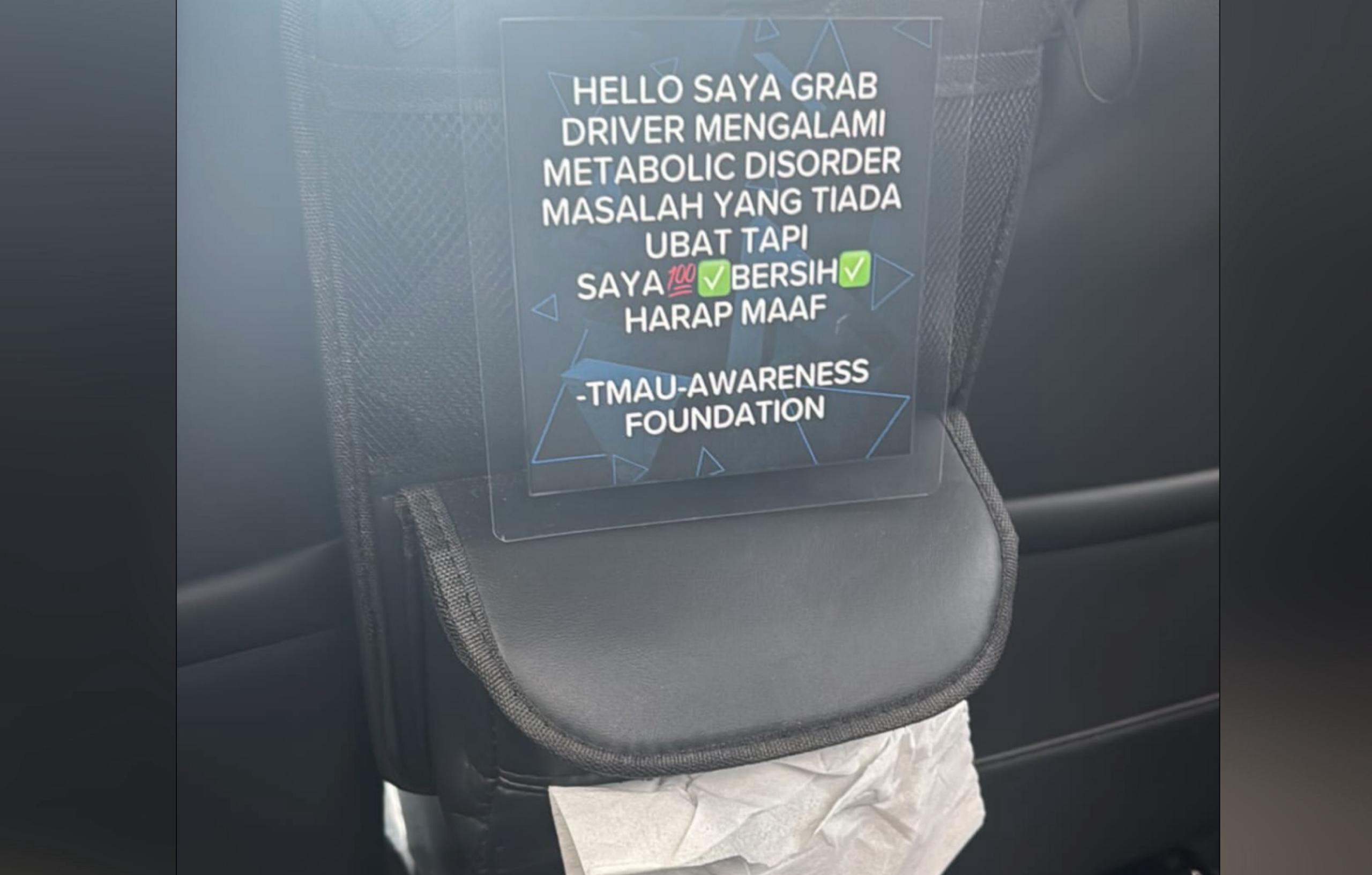 “Hello, saya pemandu Grab mengalami Metabolic disorders (gangguan metabolik), masalah yang tiada ubat, tapi saya 100 peratus bersih. Harap maaf,” jelas pemandu terbabit.