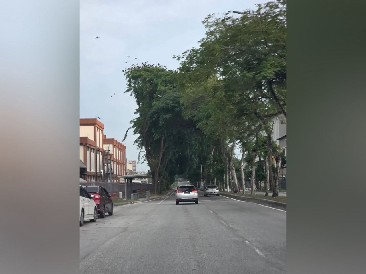 Pengguna aplikasi Threads, Muazmalek berkongsi gambar laluan yang kelihatan redup dengan pokok-pokok besar, namun sebenarnya menjadi tempat ribuan burung gagak berteduh melepaskan najis kepada pengguna jalan raya.