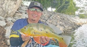 Kemudian, saya menukar gewang kepada Starlit Deep 75mm berwarna kuning kebiruan, ia dihantar ke reba yang sama. Sebaik dikarau terus ia disergap dan seekor tembaring yang menjadi rezeki tambahan.