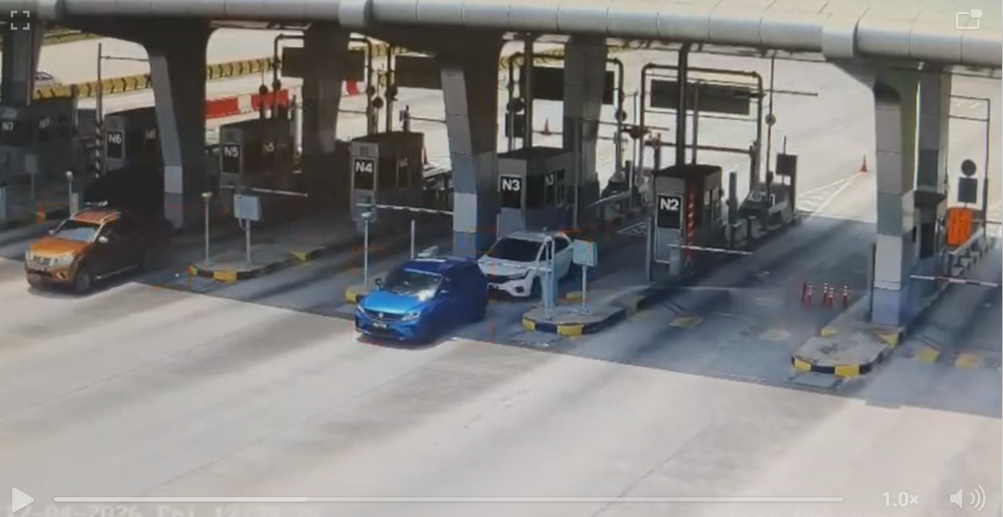 Rakaman CCTV di Plaza Tol Sungai Chua menghala ke Kajang memperlihatkan Honda City Hatchback berwarna putih dipercayai merapati belakang sebuah kereta untuk melepasi pagar tol.