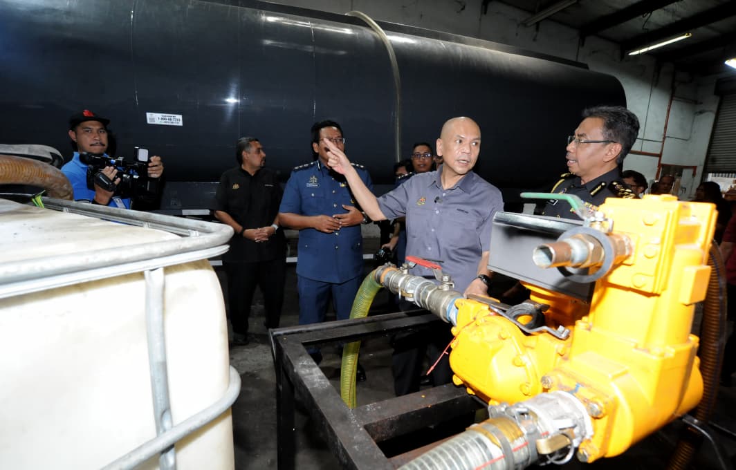 “Turut disita sebuah tangki IBC berisi diesel, sebuah pam untuk mengepam minyak, peralatan hos, sebuah tangki treler, sebuah kenderaan pacuan empat roda, sebuah lori bonded serta empat unit tangki IBC yang berada dalam muatan lori.