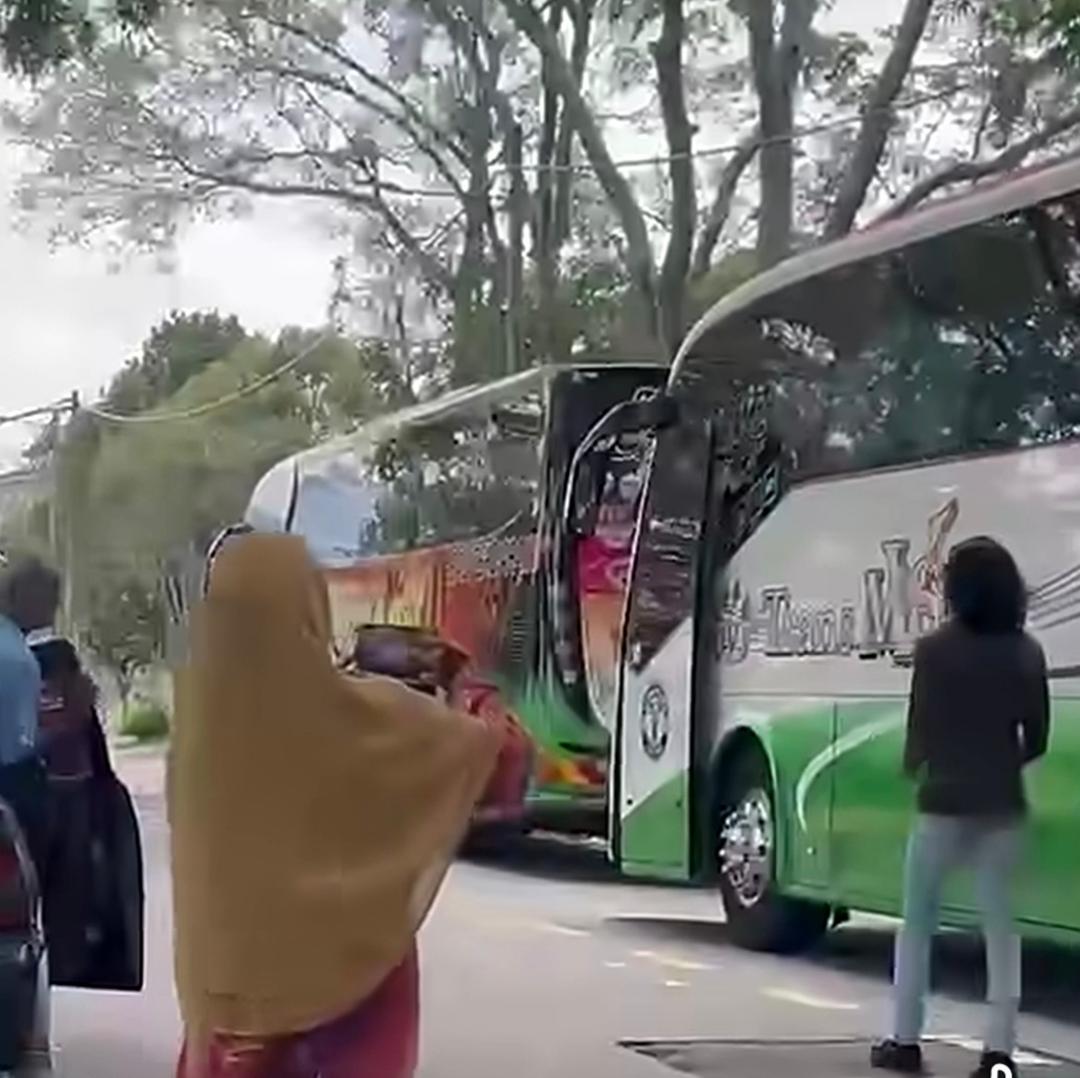 Menerusi video berdurasi 18 saat yang dimuat naik, kelihatan seorang lelaki dipercayai pemandu bas terbabit menghampiri tingkap sebuah kereta sebelum beredar selepas bercakap sesuatu dengan pemandunya.