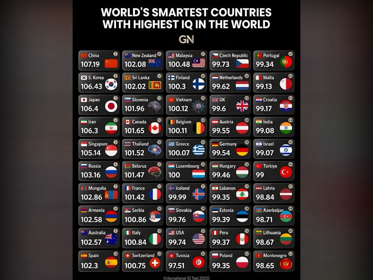 Berdasarkan data International IQ Test 2025, Malaysia mencatatkan skor purata IQ sebanyak 100.48, mengatasi beberapa negara maju lain.