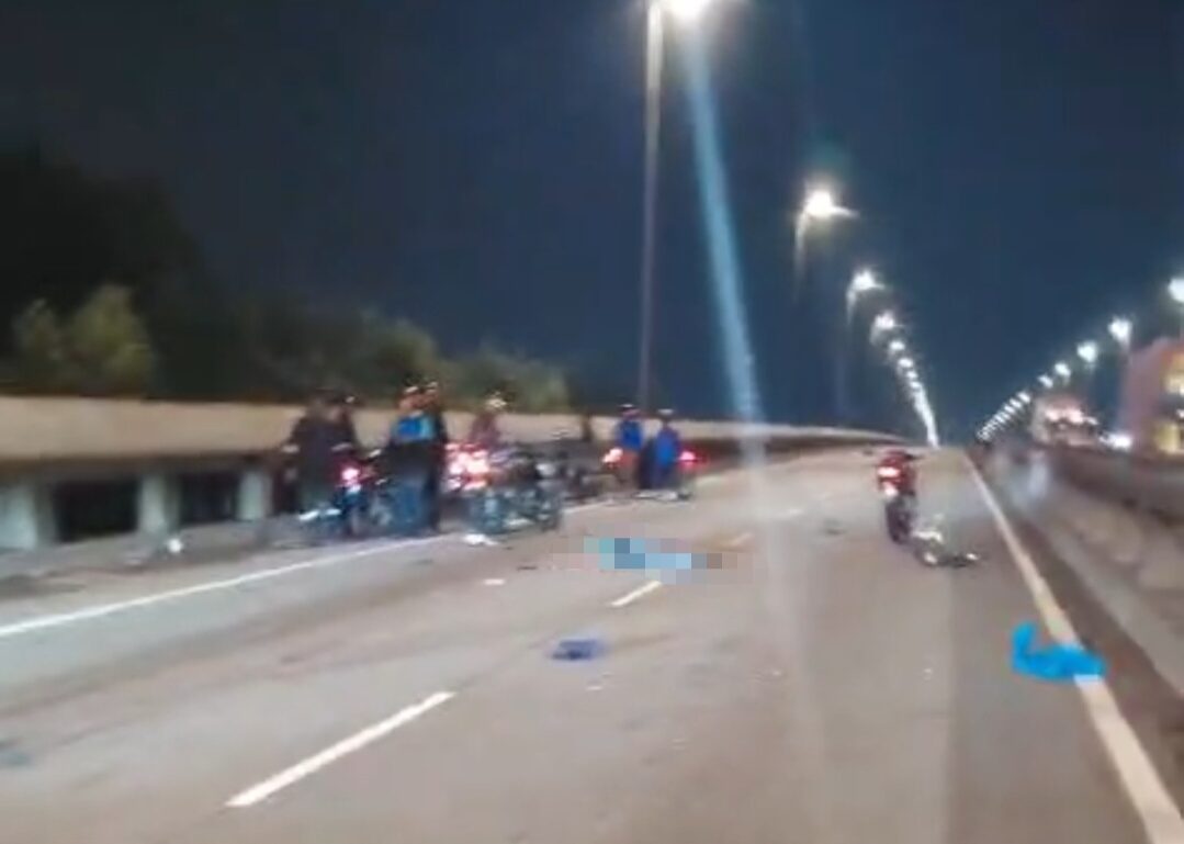 Tangkap layar keadaan mangsa yang digilis dipercayai kenderaan berat di Jambatan Muhibbah, Jalan Pelabuhan Barat, Klang.