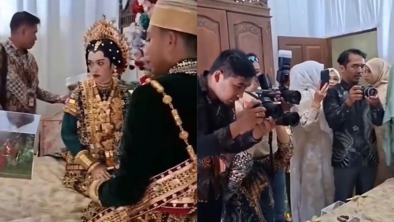 Rakaman video dikongsikan di platform Instagram oleh akaun @officiallambeturah menunjukkan beberapa jurugambar sedang merakam gambar pengantin lelaki dan perempuan duduk di atas pelamin.