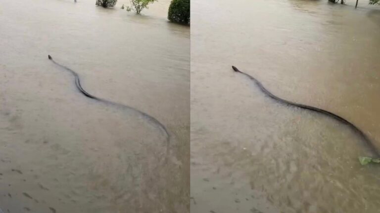 Ular hitam gergasi muncul masa banjir