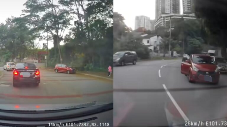 [VIDEO] Myvi nyaris langgar pejalan kaki ketika kejar kereta lain