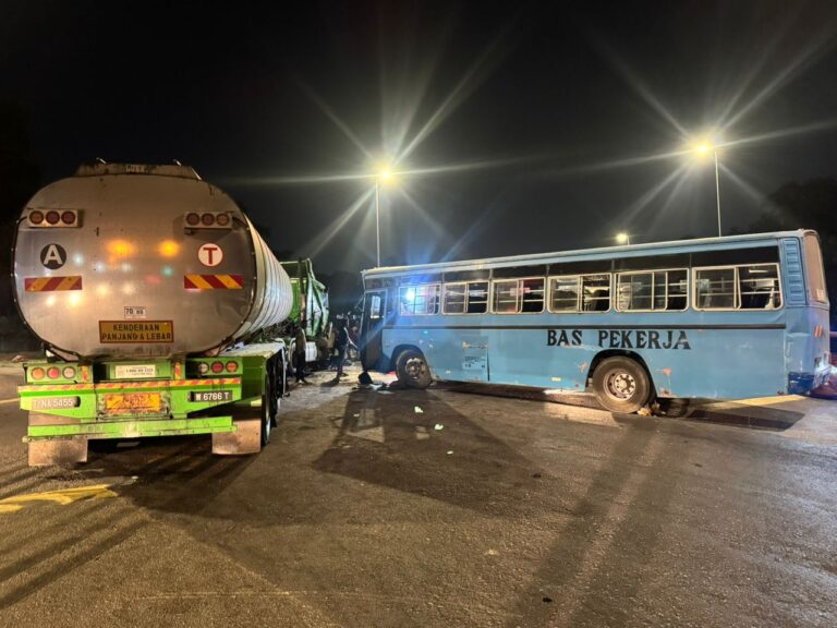 Bas pekerja sarat muatan kemalangan dengan van
