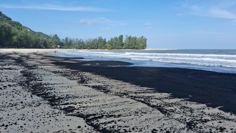 [VIDEO] Sisa arang batu terdampar, Pantai Teluk Kalong bertukar hitam