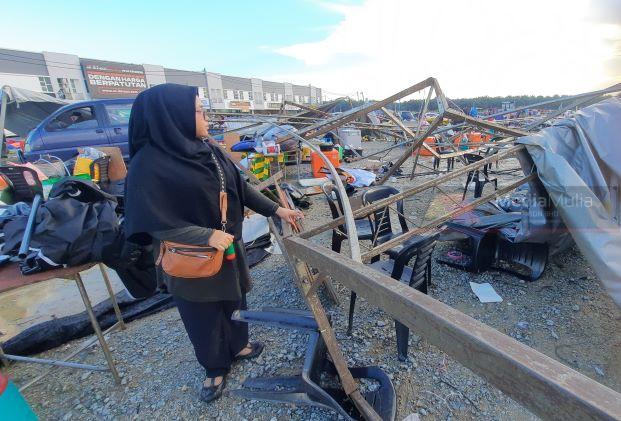 Peniaga tak sempat lari, bahu dihempap besi kanopi