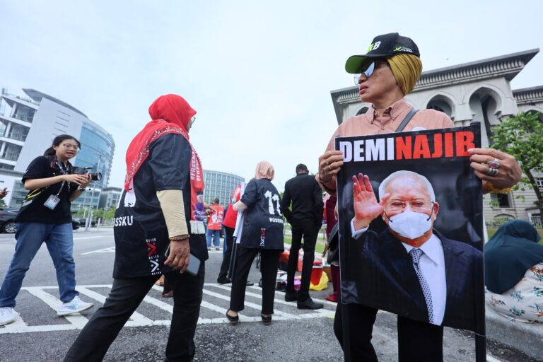 Terjemah solidariti, penyokong Najib tetap berkumpul di luar Istana Kehakiman