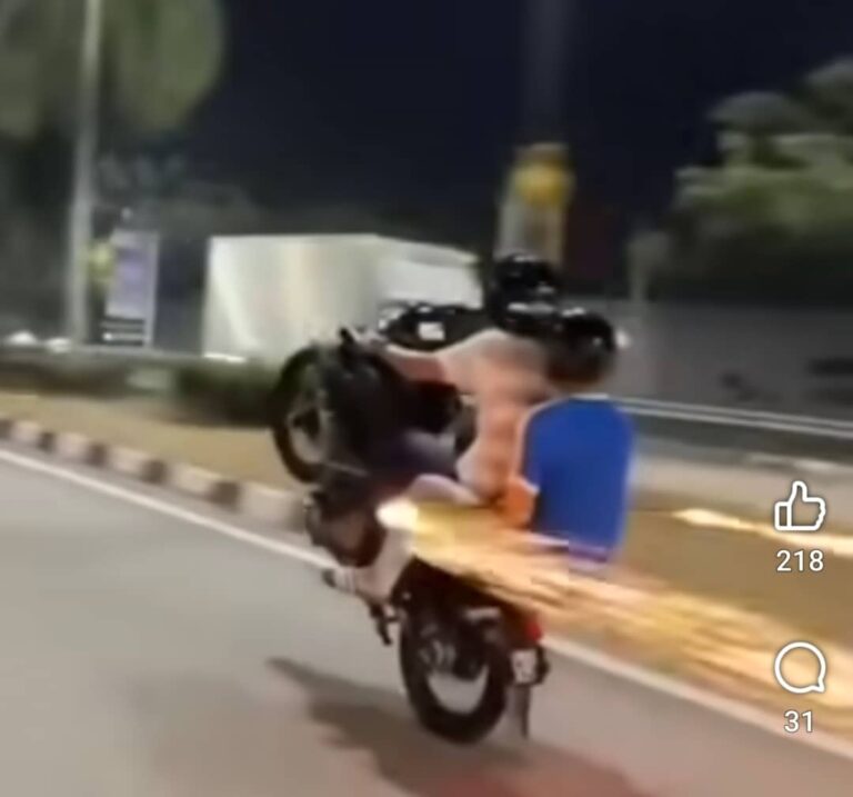 2 lelaki buat aksi ‘wheelie’ sambil nyalakan bunga api dicekup