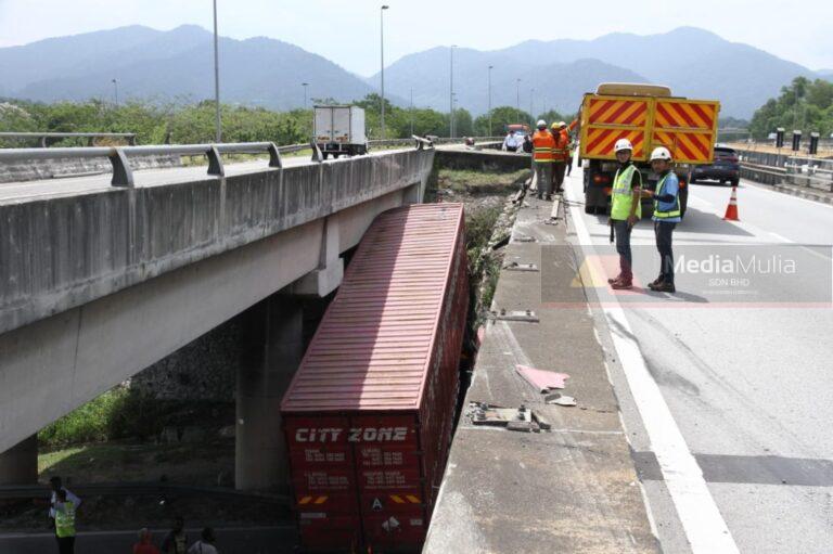 [VIDEO] Masalah brek punca treler jatuh jejambat