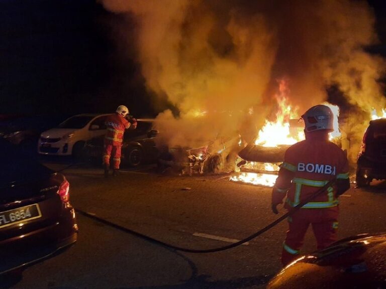 Tiga kereta terbakar di kuarters penjawat awam Presint 5