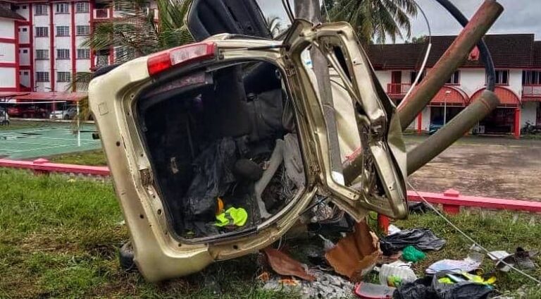 Dua pekerja kontrak maut, Toyota Avanza rempuh tiang elektrik