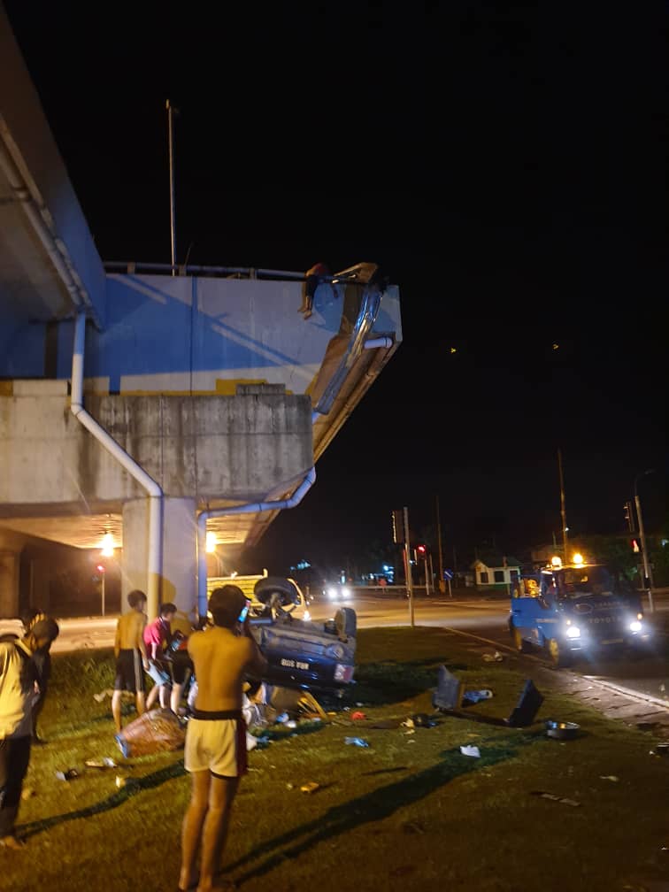 Suami maut, isteri parah kereta terjatuh laluan bertingkat