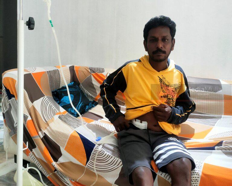 Mata pisau pemotong rumput tercabut, tertusuk betis