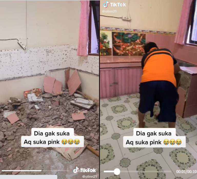 Suami roboh dapur kerana tidak suka warna merah jambu
