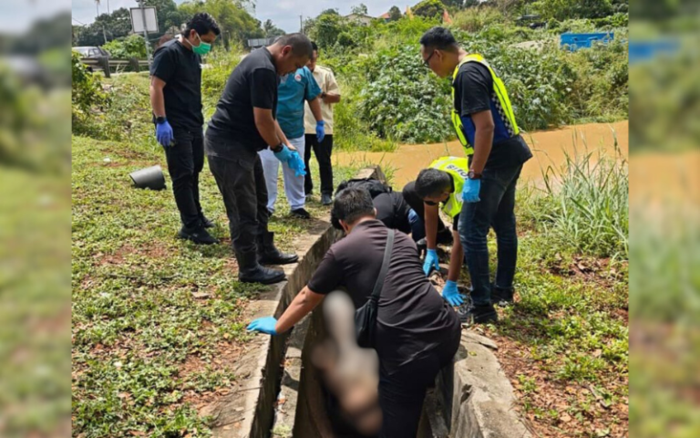 Jalan licin, penunggang motosikal maut terbabas dalam longkang