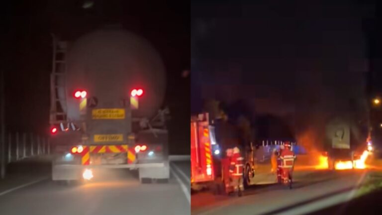 [VIDEO] ‘Terkejut dengar letupan kuat, rupanya lori terbakar’