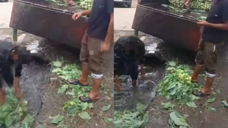 Cuci sawi dalam longkang sebelum susun dalam lori