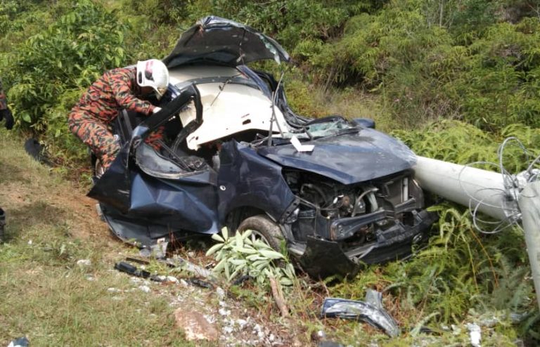 Wanita maut kereta terbabas langgar tiang elektrik