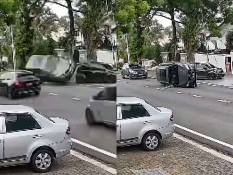 [VIDEO] Kereta parkir ‘disondol’ sampai terbalik