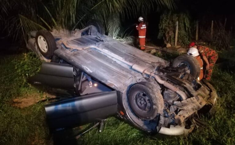 Pemandu mengantuk, lori kontena terbalik melintang jalan