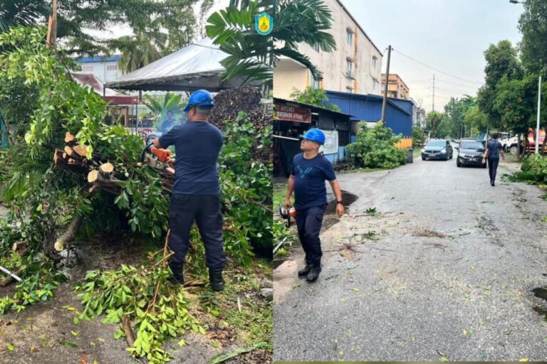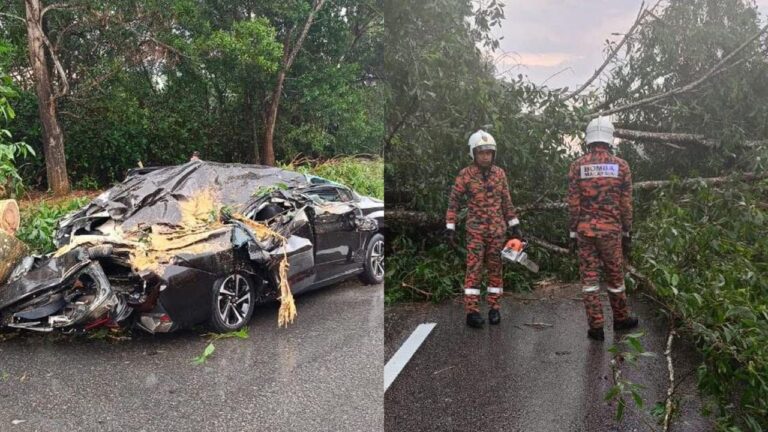 Lelaki terperangkap, kenderaan dihempap pokok tumbang