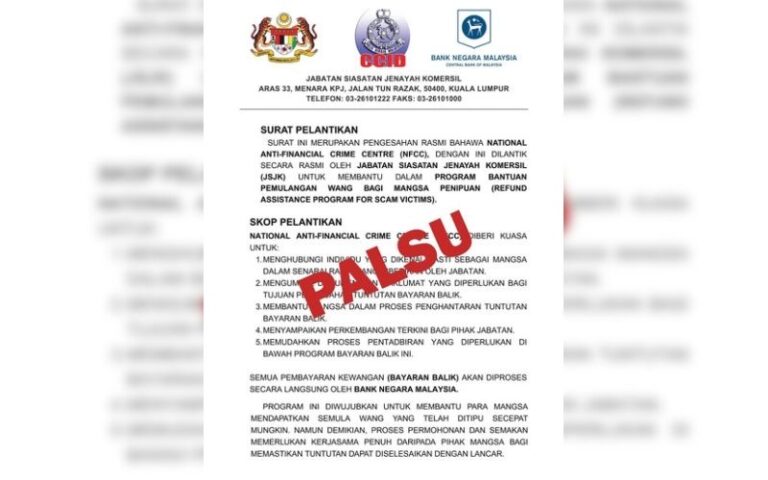 Dokumen bantuan pulang wang mangsa penipuan palsu – JSJK