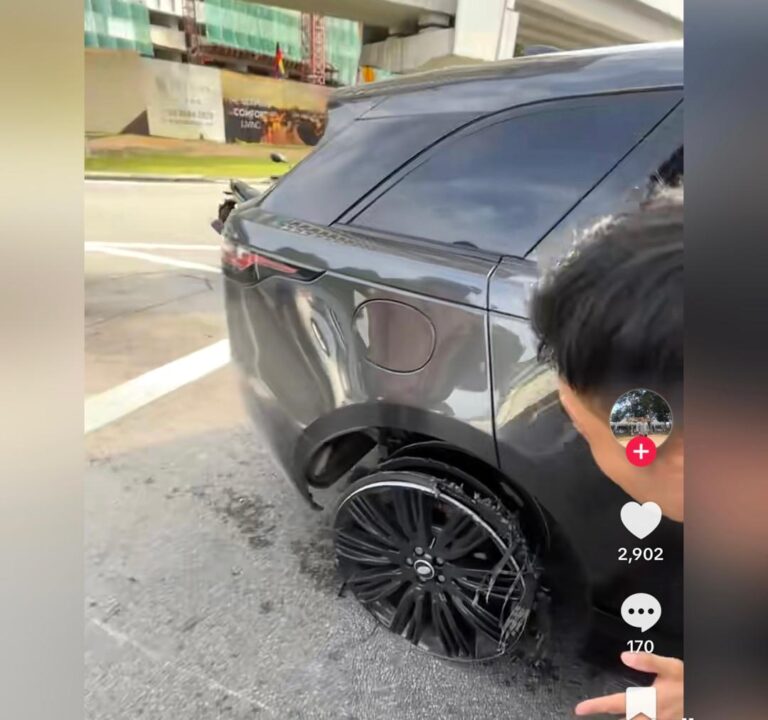 Wanita bengang, tak sangka rim, tayar kereka dicuri dalam parkir residen