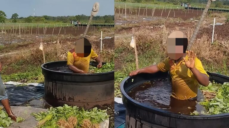 Warga asing cuci bayam sambil berendam dalam tangki air